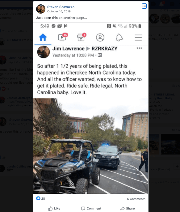 P.S. For those who have SXS in NC and are interested in discussing this movement, please join NC SXS Group and the national Street Legal SXS’s Group which are dedicated to the cause.